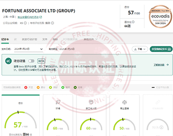 上海***股份有限公司顺利通过EcoVadis评估,最终以56/100分获得铜牌勋章